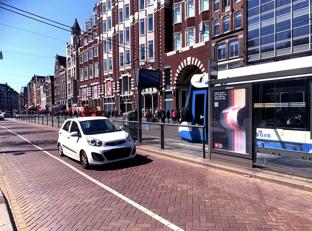 Voor Data Union DAO ( Zwitserland ) hangen deze week abri’s in hartje Amsterdam in het kader van het ETH Global evenement in Amsterdam.